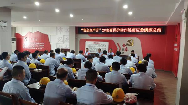 为了宣传贯彻《安全生产法》,同时学习徐振华总经理“学习新安法,做好第一责任人”的安全理念,增强公司员工的责任意识,加深安全观念,体现“安全第一,预防为主,综合治理”的安全方针。提高企业职工应对突发事件的应变处置能力,对照公司安全月活动方案。在2022年 6月28日上午,乐鱼在线举行了“2#主变保护动作跳闸大型反事故演习”活动。